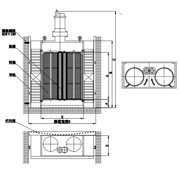 雙轉(zhuǎn)鼓粉碎型格柵安裝示意圖:
